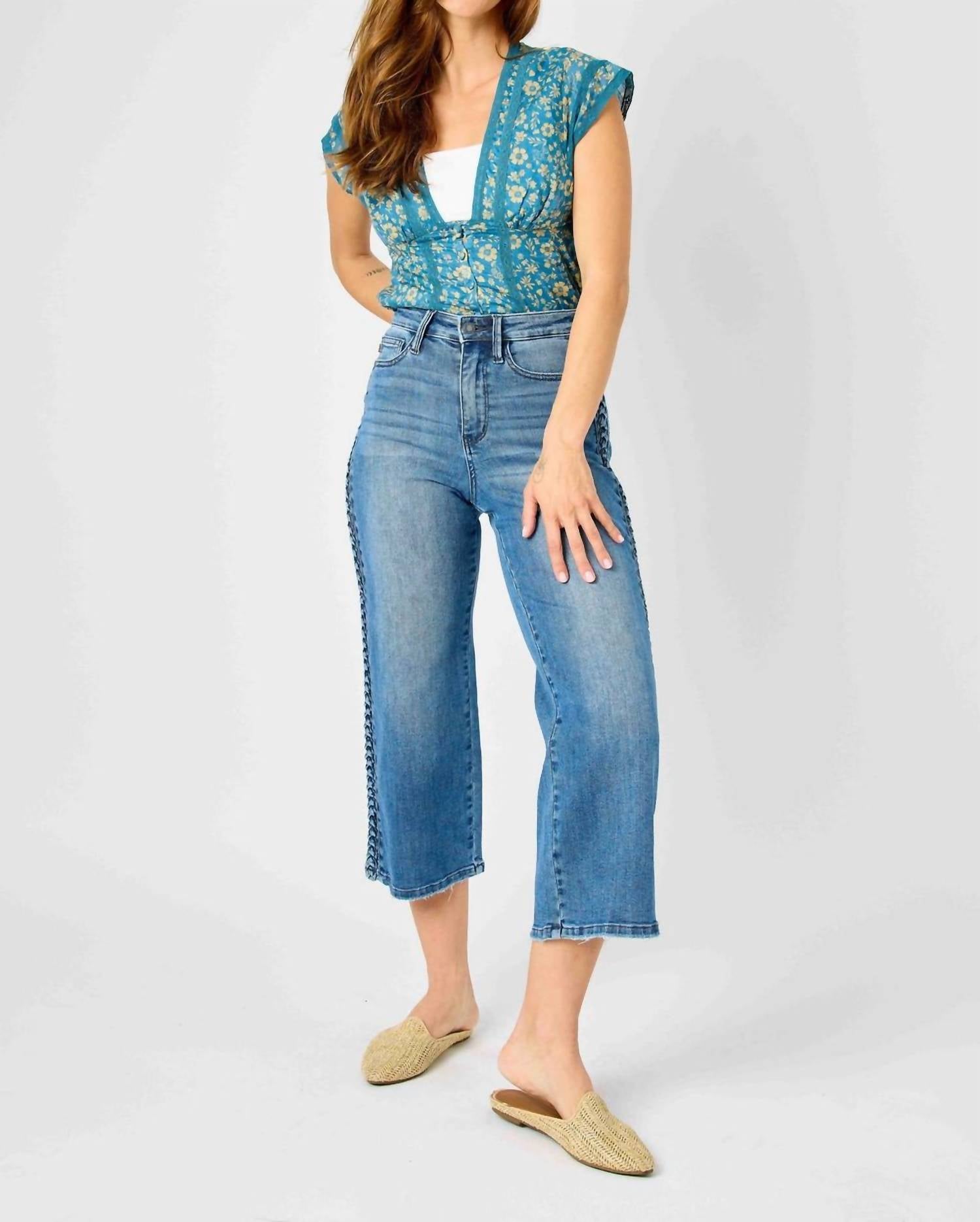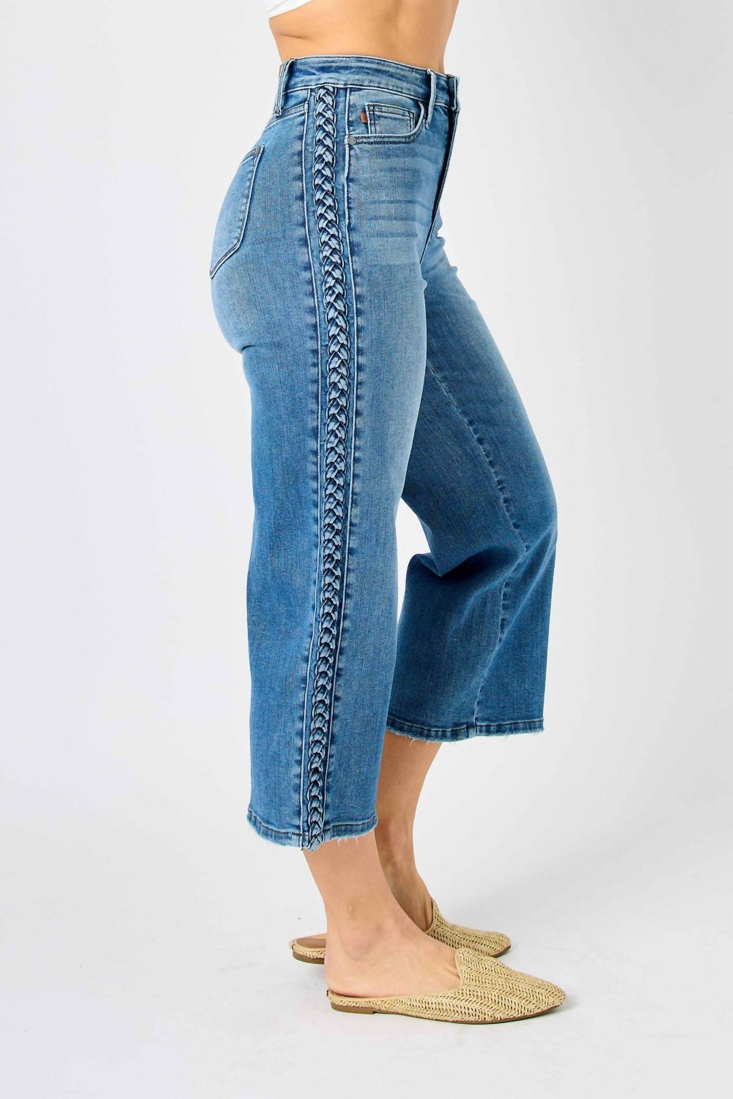 Judy Blue - Braid Ss Detail Crop Wide Jeans