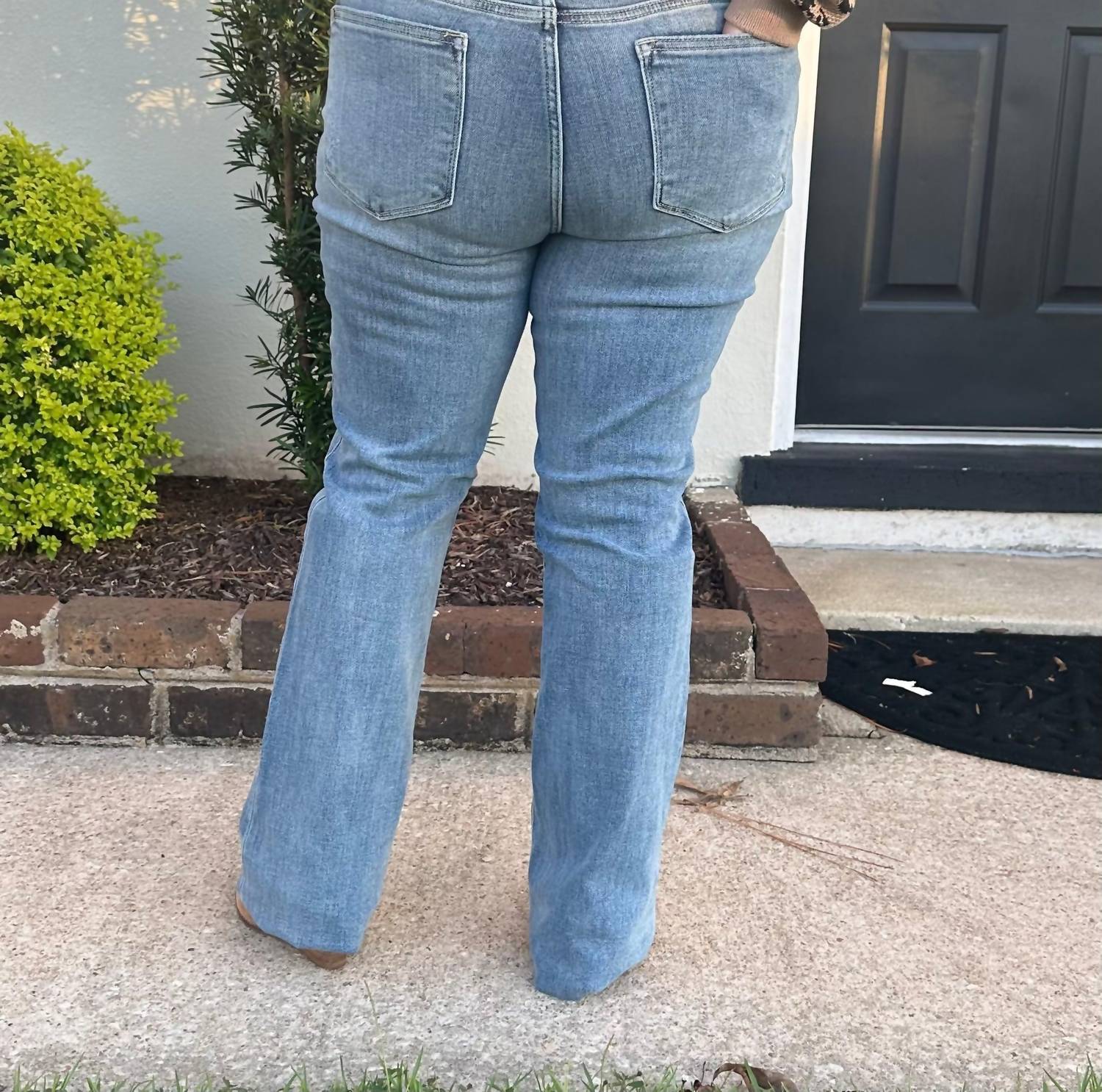 A boot-cut jean that not only looks good on, you'll be comfortable in them all day. Elevate your denim collection with the Core Mid Rise Bootcut Jeans by Judy Blue, crafted for a flattering fit and timeless appeal. These light wash jeans feature a classic bootcut leg, mid-rise waist with a 9.75" rise, and a 32.5" inseam, ideal for versatile styling. Made from a comfortable cotton blend of 81% Cotton, 16% Polyester, and 3% Spandex, they ensure a perfect balance of structure and stretch. Closure: Button closure. Care instructions: Machine wash cold inside out, tumble dry low.