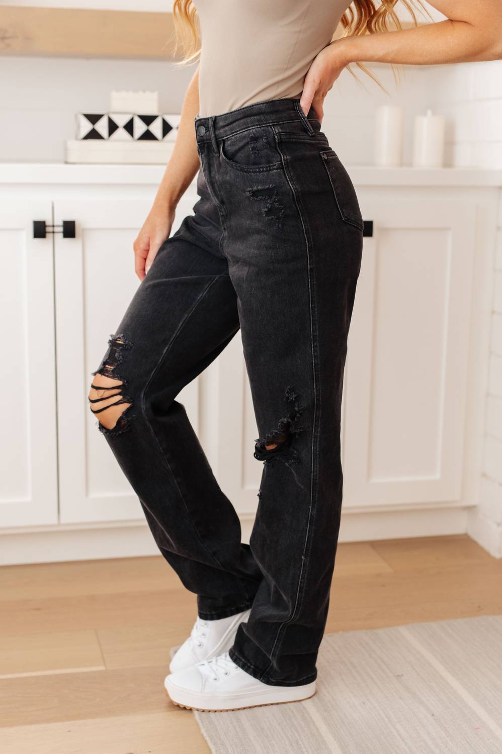 Judy Blue - High Rise Rigid Magic 90's Distressed Straight Jeans