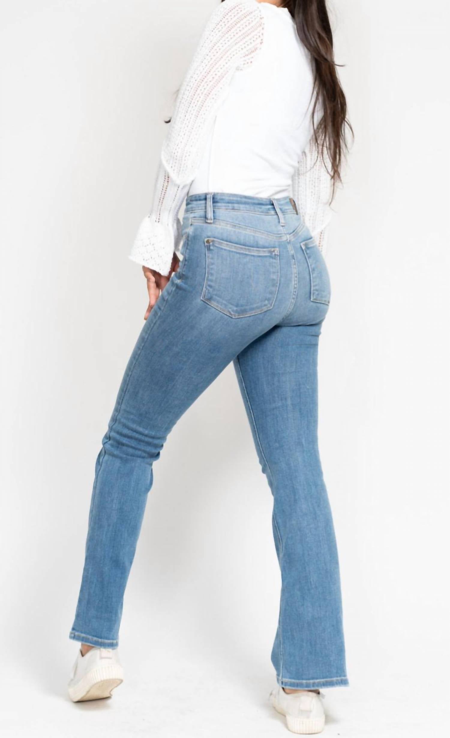 Just add boots! Elevate your wardrobe with Judy Blue's High Waist Classic Bootcut Jeans, perfect for any occasion. Crafted from a stretchy denim blend of 69% Cotton, 16% Polyester, 9% Rayon, 5% Elastrel-Poly, and 1% Spandex, these jeans offer a comfortable and flattering high-rise fit. Featuring a classic bootcut leg and zip closure, they're ideal for a stylish dinner party or a casual day out. Easy to care for, simply machine wash and tumble dry for effortless maintenance.