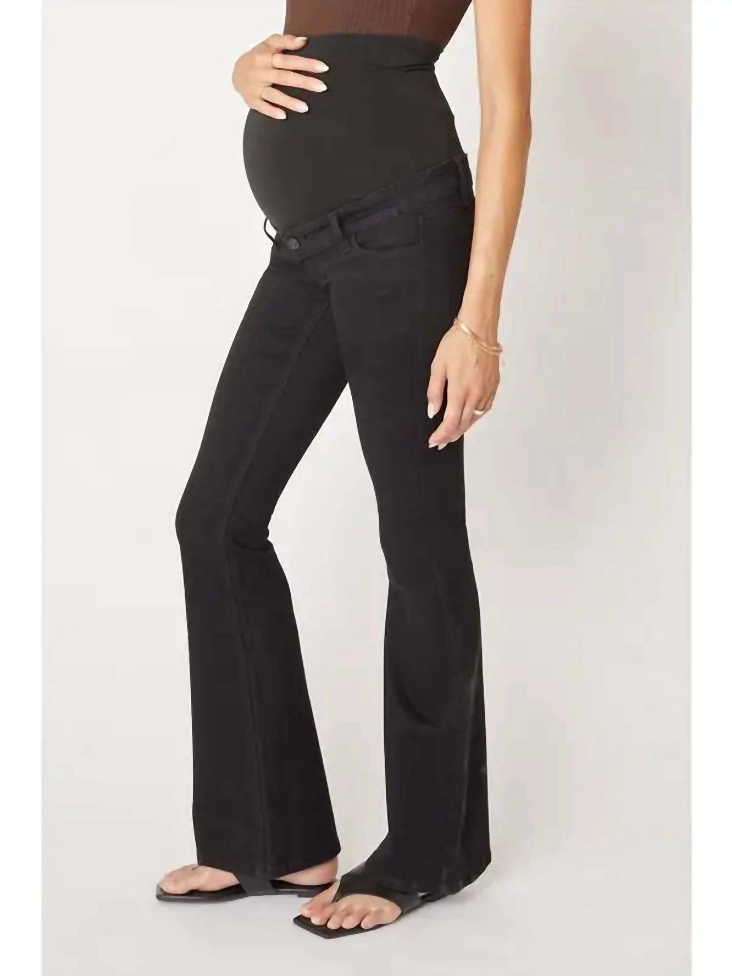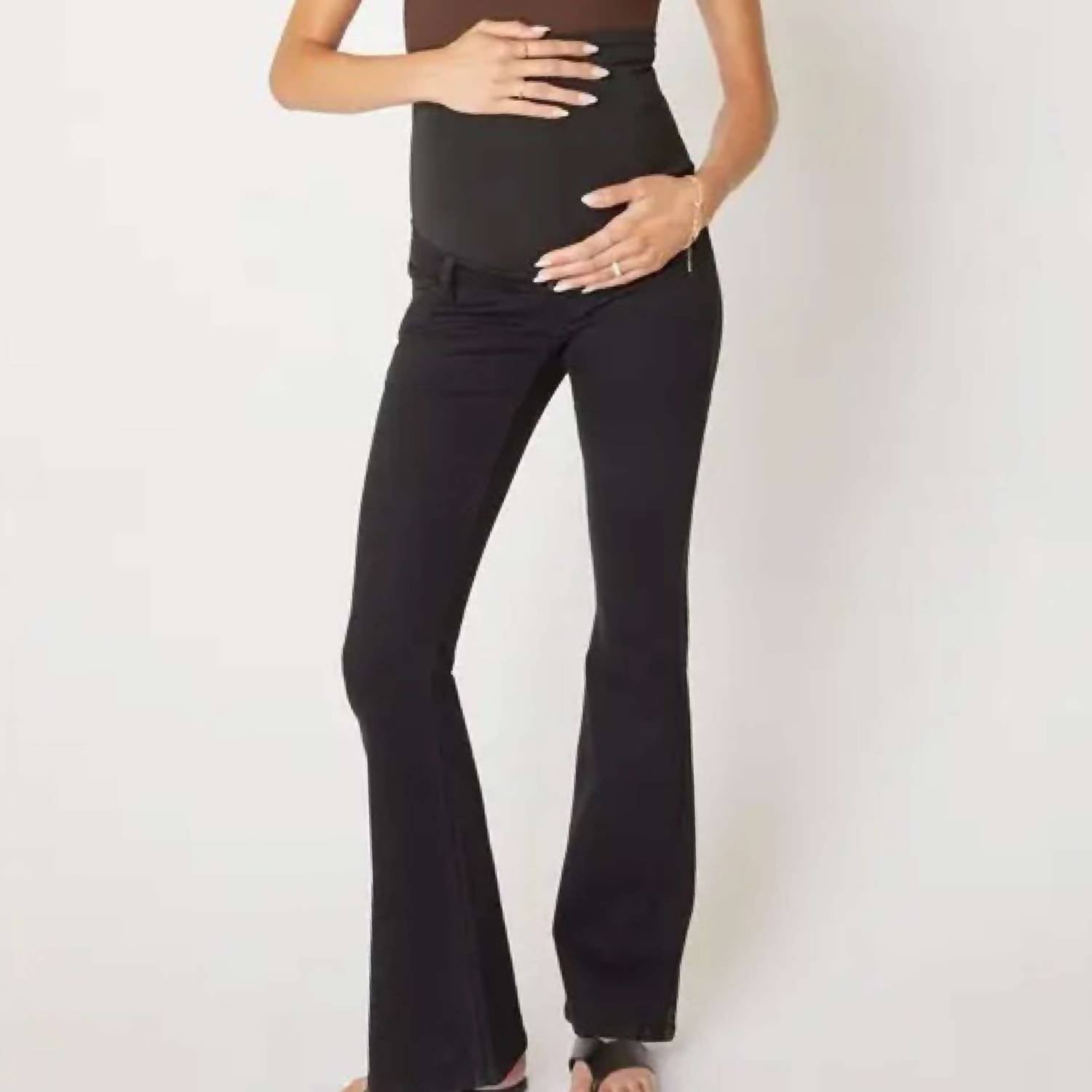 Just as cute as they are comfortable. Elevate your maternity wardrobe with the Diana Maternity Flare Jeans by KanCan, crafted for both style and comfort. Featuring a flared leg and classic black solid pattern, these jeans include a regular 5-pocket design and a single button front closure with a zip fly. The jeans are made from a cotton blend with 66.5% Cotton, 31.3% Rayon, and 2.2% Spandex, offering flexibility and a perfect fit. With a 5" front rise and a 33.5" inseam, these jeans are designed for an engaging streetwear look.