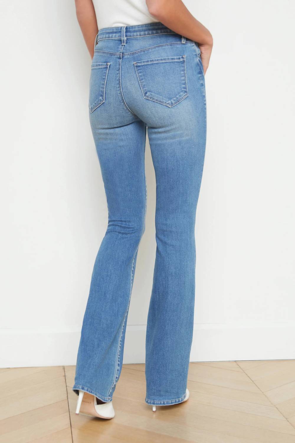 Introducing the Selma High Rise Sleek Baby Boot Jeans by L'Agence, perfect for effortlessly chic streetwear looks this spring. Designed with a high-rise waist, these jeans feature a slim fit and a bootcut leg with a 17.5" leg opening, ideal for elongating your silhouette. Made of 73% Cotton, 25% Repreve Polyester, and 2% Spandex in a light wash denim, these jeans offer both style and comfort. Constructed in the US, they include convenient pockets and a secure zip closure. Care instructions include machine wash and tumble dry, so maintaining their pristine condition is easy.