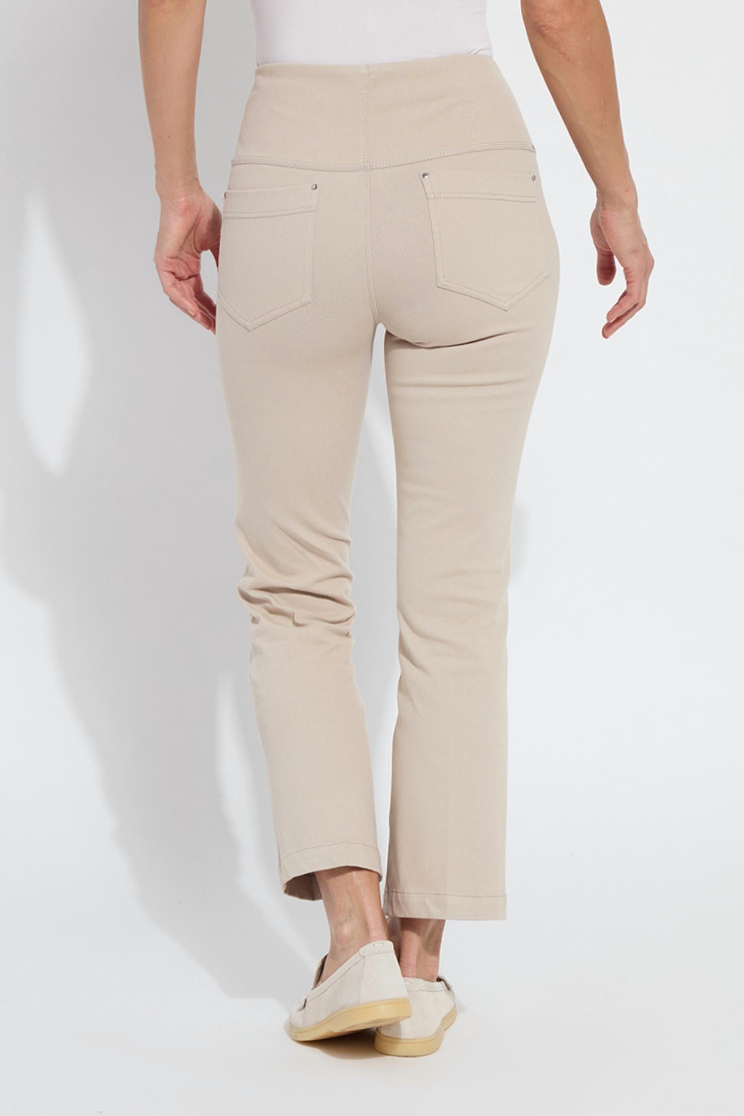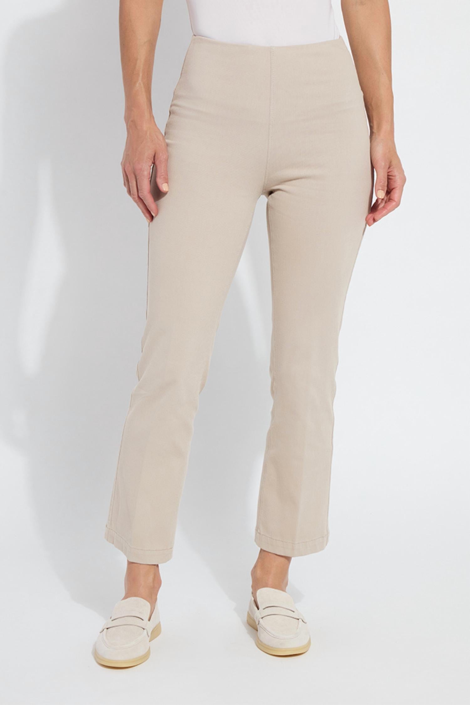 If you're looking for boot-cut, this is the jean for you. Discover the Lysse Women's Denim Baby Bootcut in a versatile beige that pairs seamlessly with any summer wardrobe. These bootcut pants are a perfect match for shorter women, featuring a 27-inch inseam and a mid-rise fit. Crafted from 95% cotton and 5% spandex knit denim, they offer exceptional 4-way stretch, ensuring comfort and mobility. Designed with a pull-on closure and a patented 360 smoothing waistband, these pants promise a flattering silhouette. They are complete with back patch pockets and a light wash finish. Care: Machine wash and tumble dry. Ideal for streetwear or vacation outings.