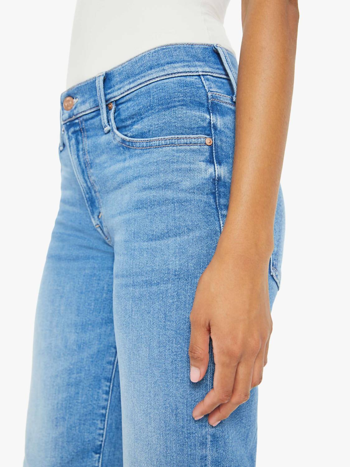 Pair these straight leg jeans with flats, sandals or even heels! You can't go wrong. Discover the Mid Rise Rambler Zip Ankle Jean by Mother, expertly crafted for a relaxed fit with a wide straight leg. These jeans feature a mid-rise waist and a button closure, complete with a zip fly and a clean ankle-length inseam of 27.5 inches. Produced from a cotton blend of 78% cotton, 16% modal, 4% polyester, and 2% elastane, they offer stretch for comfort, highlighted by whiskering and fading at the knee. Care instructions: Machine wash. Model is 5'8" and wears size 26.
