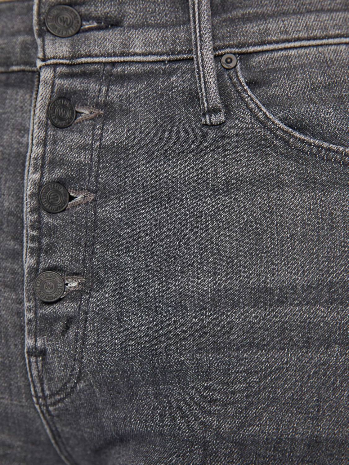 This mid-rise straight leg has an exposed button fly and a clean ankle-length inseam. Cut from soft stretch denim, Up In Smoke is a dark grey wash with subtle fading and whiskering. Made in Los Angeles. Style No. 11136-1158-UPS. 92% Cotton 4% Elastane 4% Polyester. 9 3/4" Rise. 27 1/2" Inseam. 13" Leg Opening. Model is 5'10" and wears size 26 or small bottoms and size small shirts.