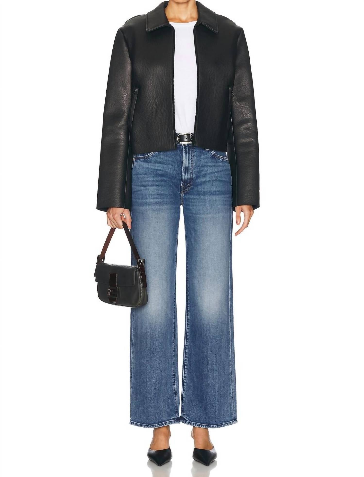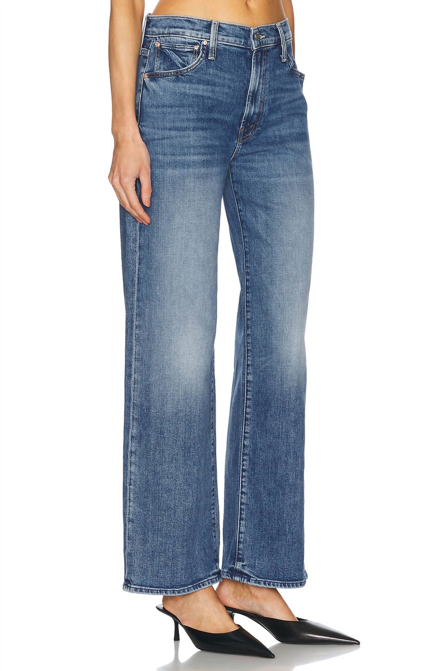 A flattering silhouette that's suprisingly versatile. Meet the Dodger Flood Cuff Jean by Mother, a standout piece in the vintage-inspired TOIL AND TROUBLE color. Crafted from a comfortable 98% cotton and 2% elastane blend, these high-rise jeans offer a stylish wide leg with a 31-inch inseam and 11-inch rise. Originating from the USA, they feature a practical zip fly with button closure, along with classic 5-pocket styling. The denim showcases a medium wash with whiskering and fading details, perfectly finished with laid-back cuffs. For best results, machine wash and lay flat to dry.