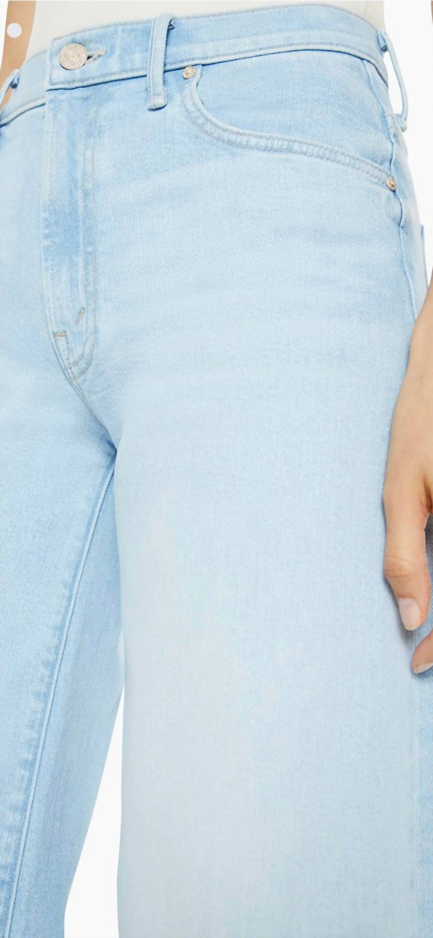 A flattering silhouette that's suprisingly versatile. The Swisher Sneak Jeans by Mother are the epitome of laid-back style with a wide-leg design that effortlessly complements any casual ensemble. Crafted from a blend of 90% Cotton, 6% post-consumer recycled cotton, 3% Polyester, and 1% Elastane, these jeans ensure comfortable wear with a touch of stretch. Their solid "Yep" color gives these jeans a versatile look, while the button closure adds a classic touch. Perfect for making a subtle yet chic statement, these jeans are a must-have for any wardrobe.