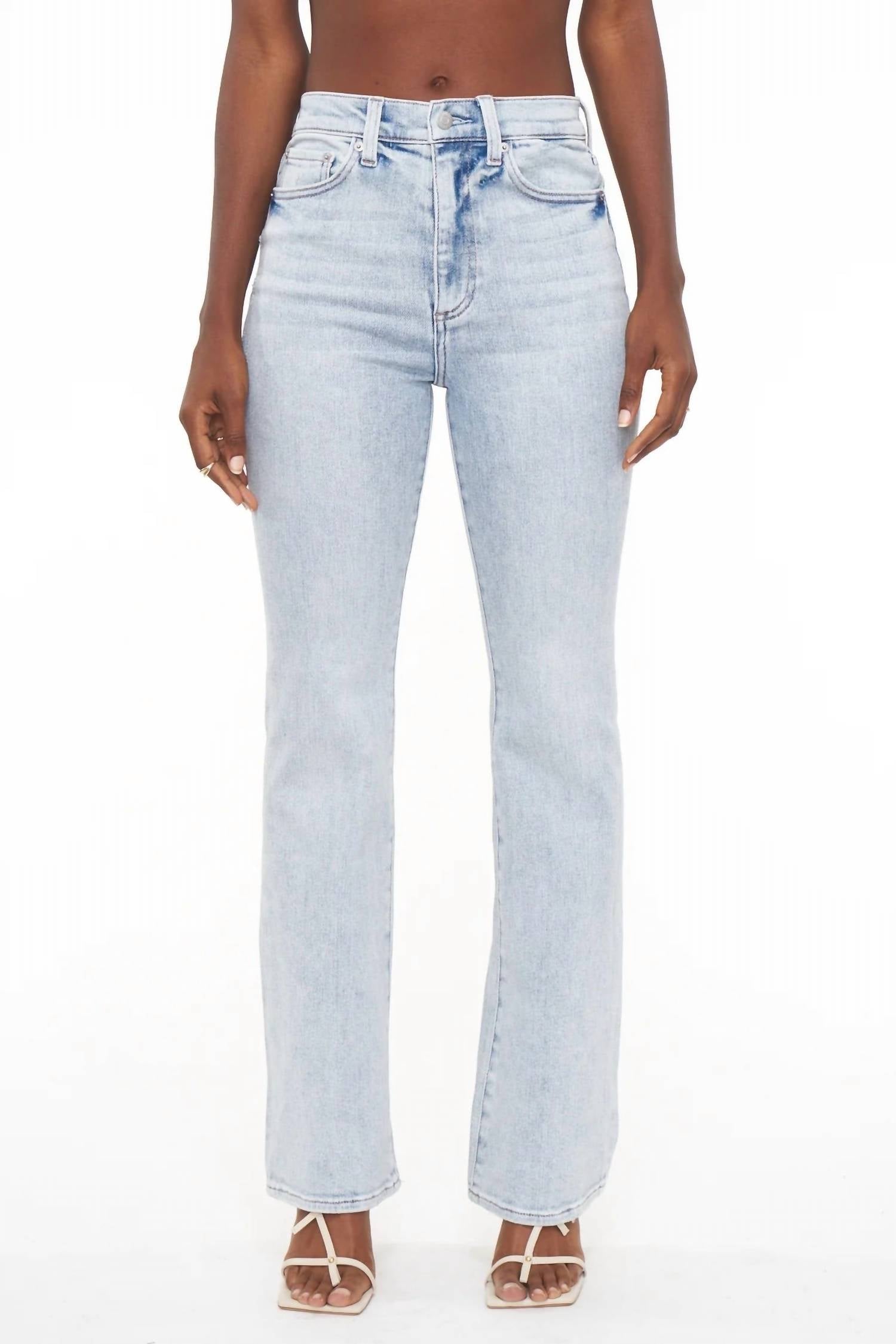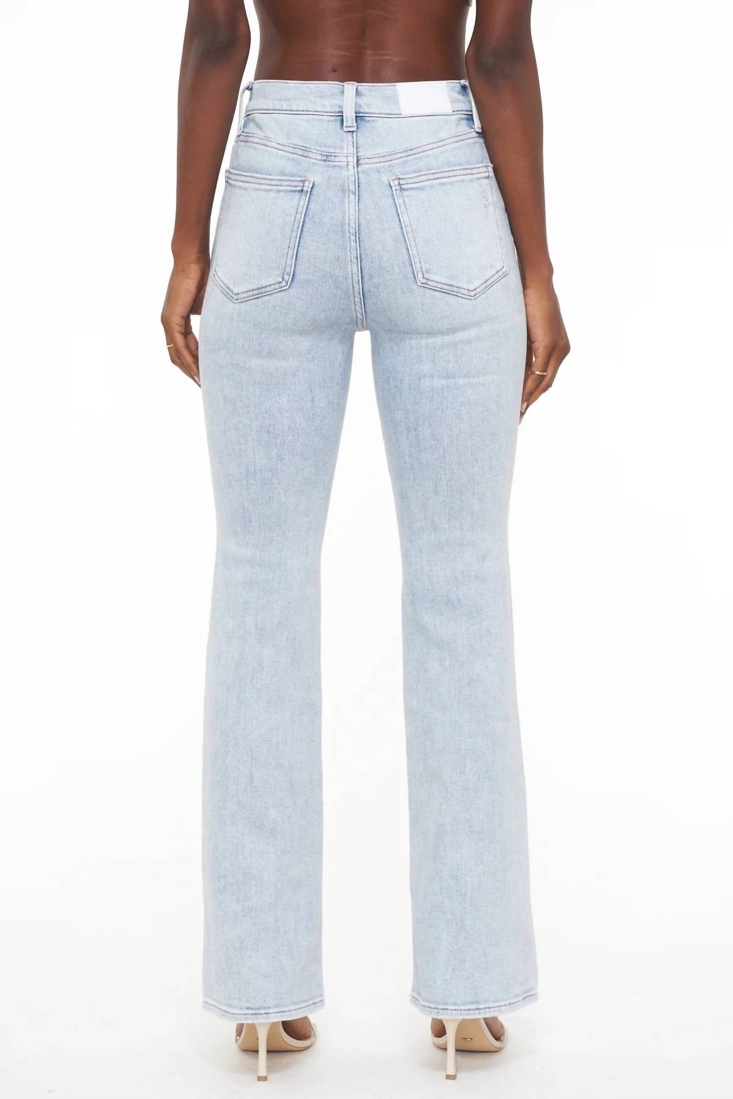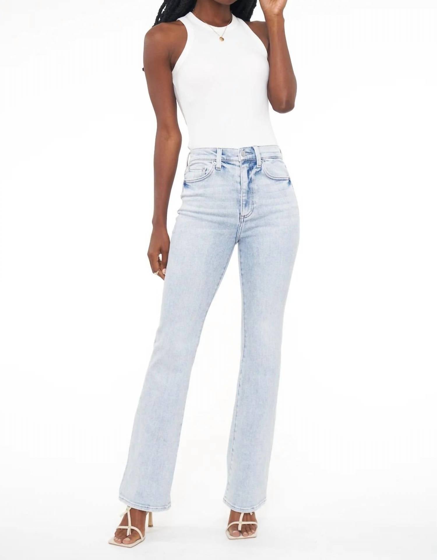 Tuck your favorite tee into these high-waist jeans for a more casual-cool feel. Introducing the Dana High Rise Bootcut Jeans by PISTOLA, the perfect addition to your wardrobe in a light wash Paseo hue. Featuring a high-rise waist and a relaxed fit with a bootcut leg, these jeans offer a flattering silhouette with a rise of 12" and an inseam of 32.5". Crafted from a comfortable cotton blend (99% cotton, 1% elastane), they ensure a structured look with added stretch. Closure: Button closure. Care: Machine wash and tumble dry, ideal for spring streetwear or vacation looks.