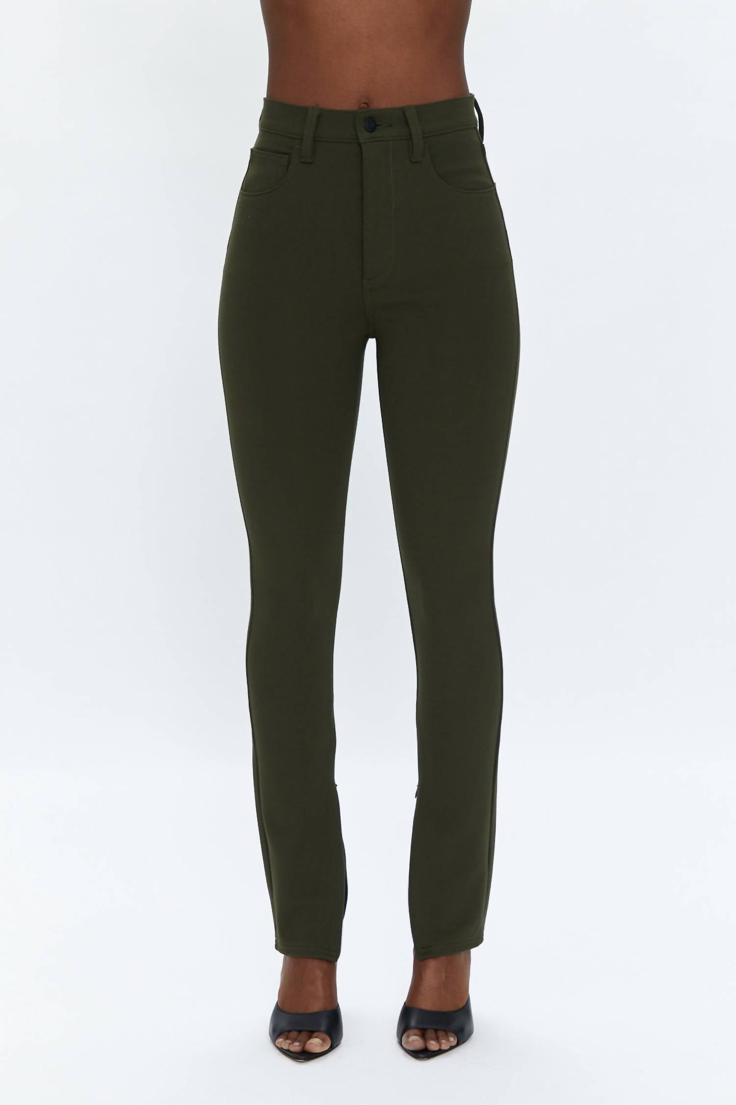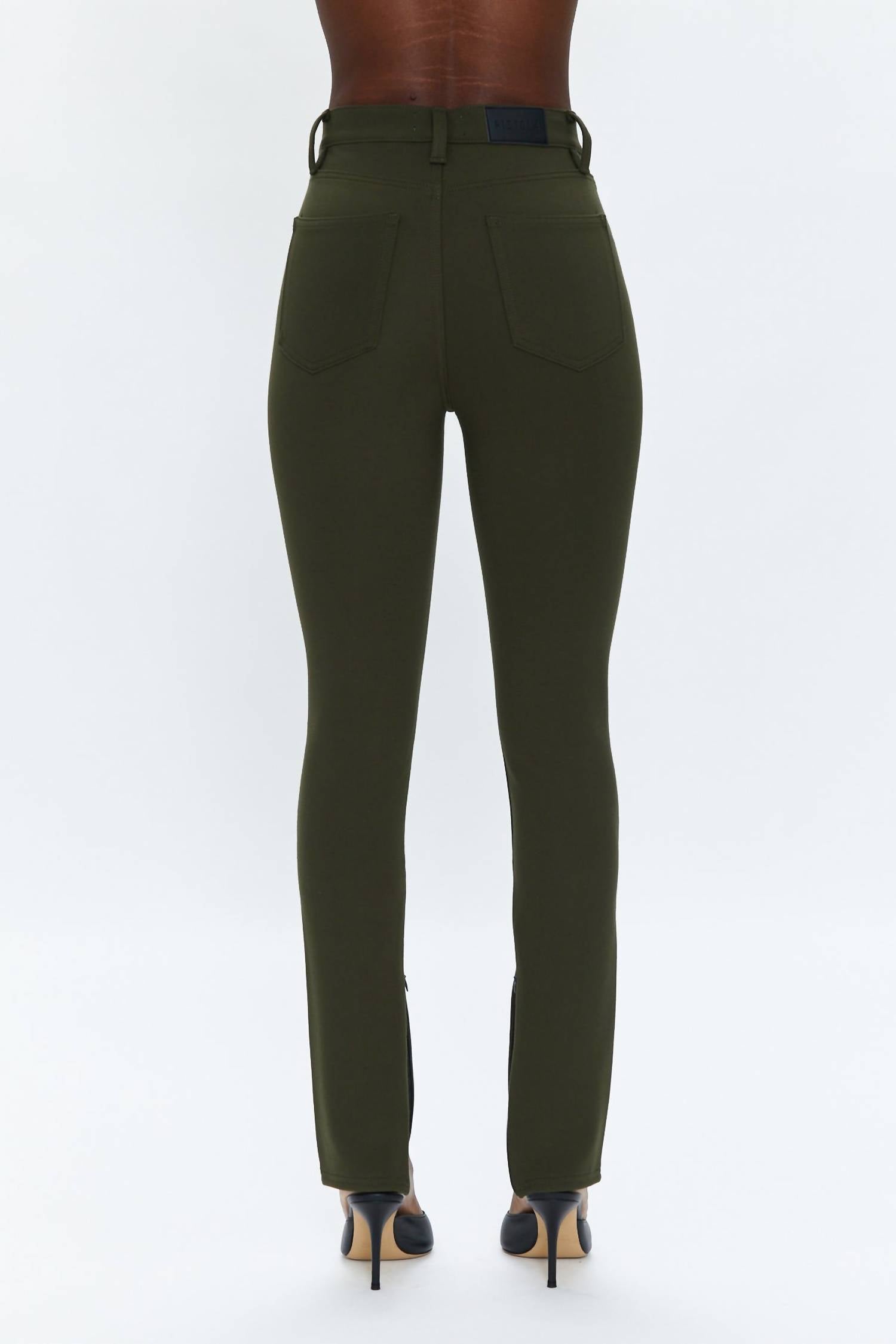 The Kendal High Rise Skinny Scuba Jeans by PISTOLA offer a unique combination of style and comfort in a rich Forest color. These jeans are crafted from a stretchy fabric blend of 47% rayon, 46% nylon, and 7% spandex, ensuring a snug yet flexible fit. Made in China, they feature a zip fly with button closure, invisible zippers, and zippered cuffs, providing a smooth look. Care is a breeze with machine wash instructions, and the pants boast a 5-pocket styling with a 29-inch inseam and a 10-inch rise for a polished silhouette.