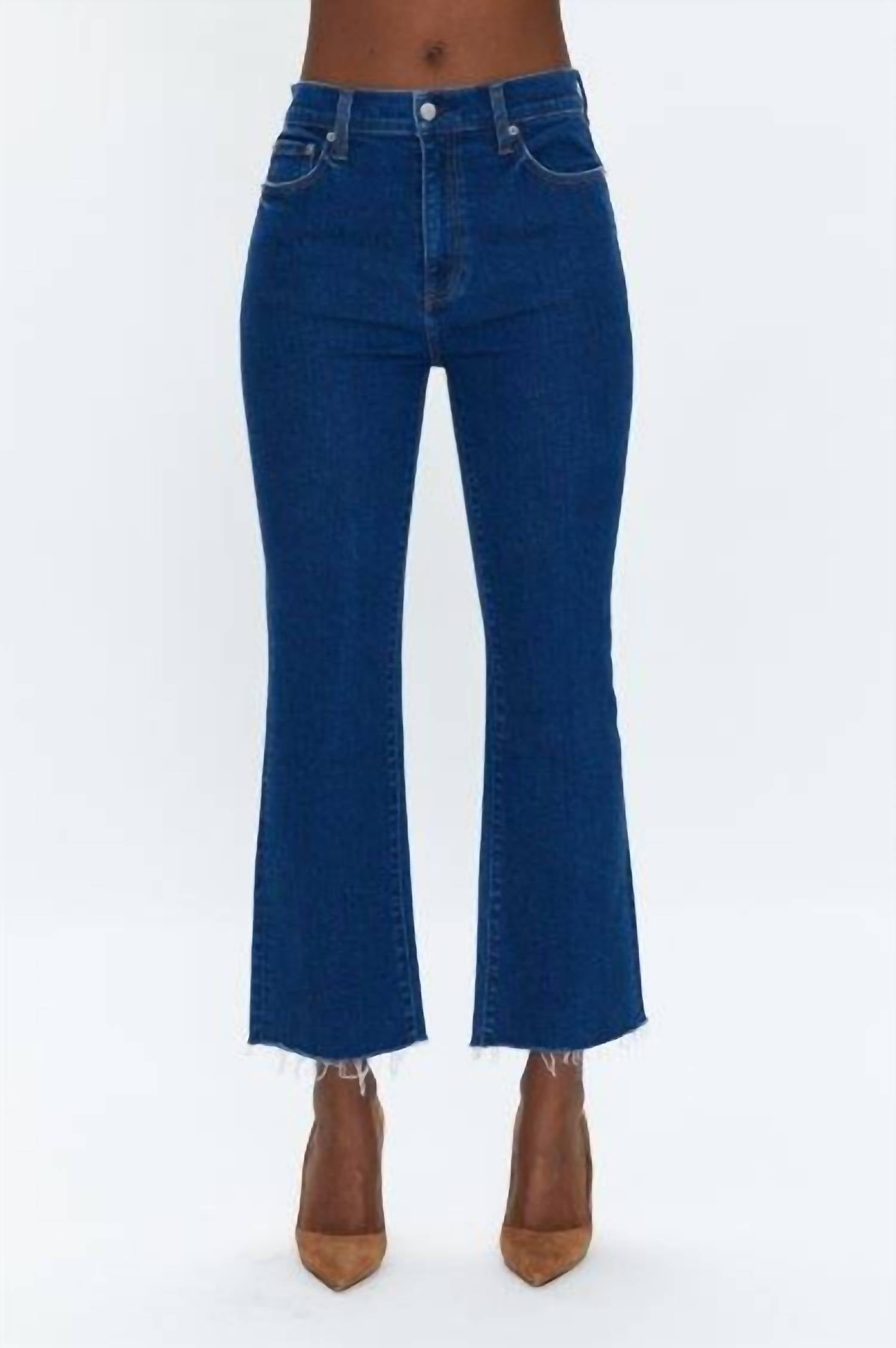 If you're looking for boot-cut, this is the jean for you. Discover the PISTOLA Lennon Cropped Bootcut Jeans in the Waterloo shade, perfect for elevating your wardrobe with stylish versatility. Featuring a high-rise, relaxed fit, these jeans are crafted from a comfortable blend of 95% Cotton, 4% Elasterell, and 1% Spandex. With a flattering bootcut leg, 11" front rise, and 27" inseam, they offer both style and comfort. Designed with a button closure, these jeans are an ideal choice for travel and streetwear occasions.