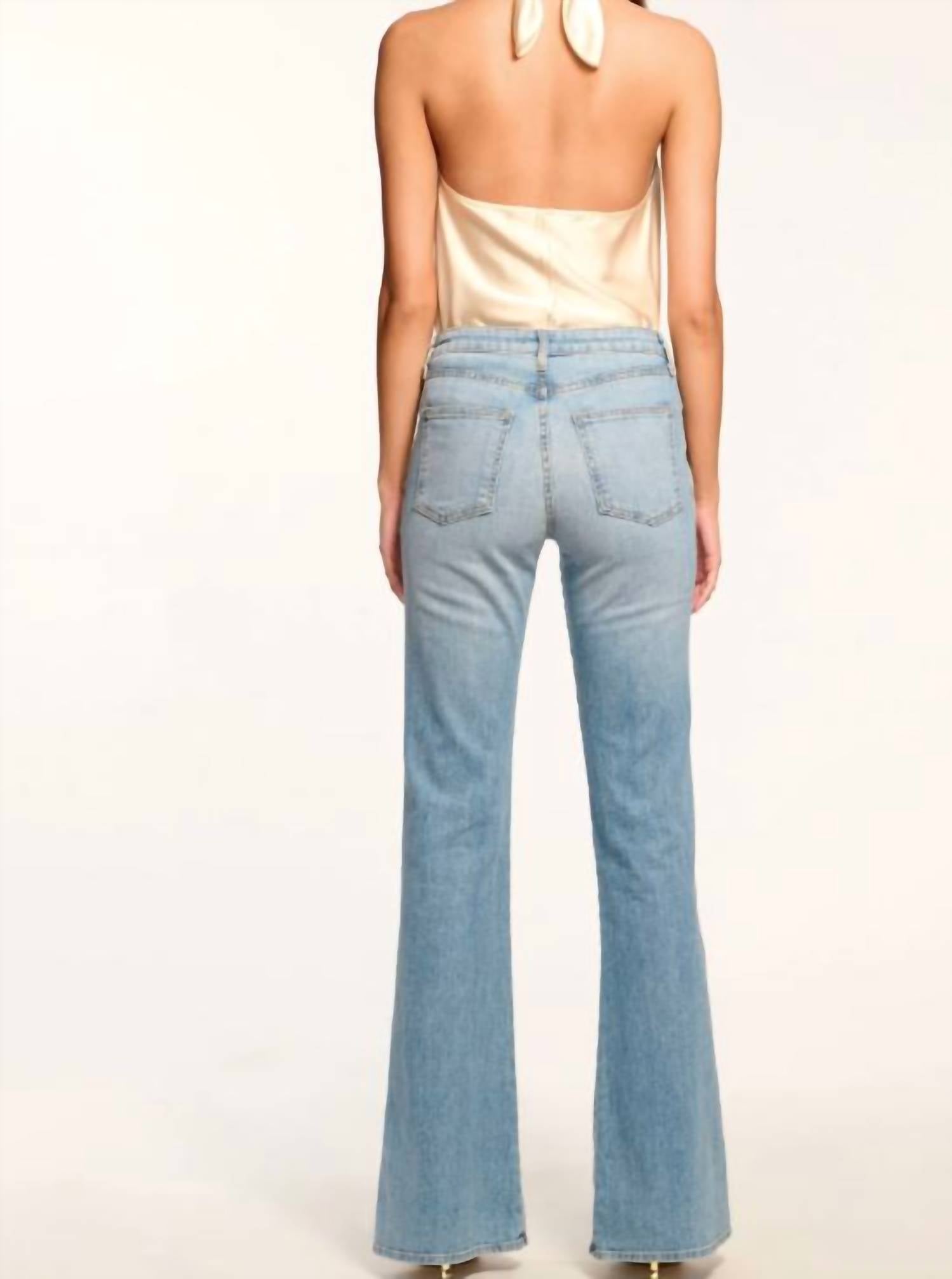 Just as cute as they are comfortable. Our number 1 bestselling jean, the Helena High-Rise Flare, never goes out of style. With sailor button details and a 70s style edge, this slim-fit jean has been carefully constructed to achieve a smooth flare shape without bunching at the knee, making your legs look miles long. Our signature Japanese denim holds you in while still allowing you to move and groove through your do-it-all days.