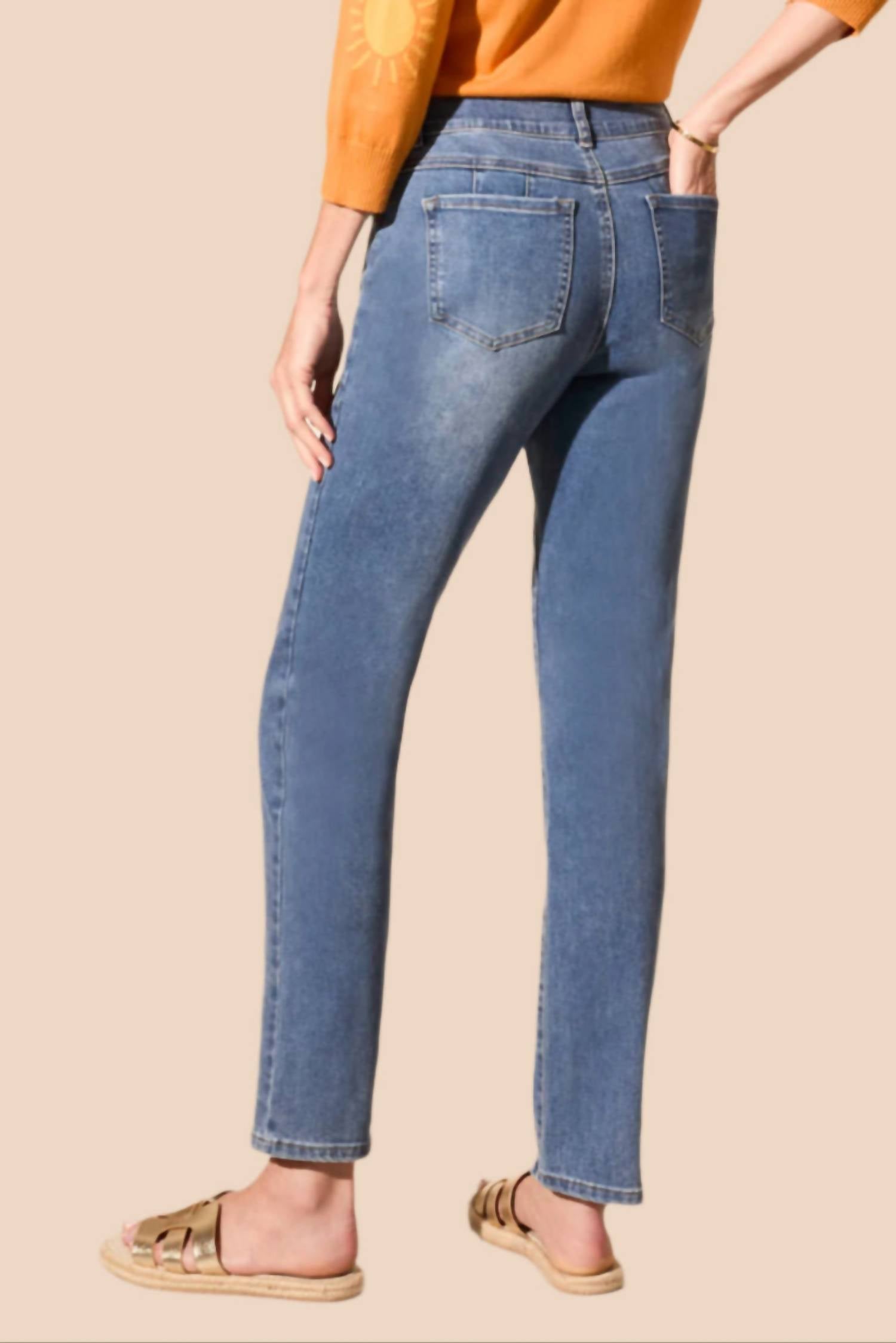 These must-have jeans are fit to perfection. Introducing the Sophia 32" Straight Leg Jeans by TRIBAL, crafted in a stylish white with a comfortable mid-rise design. Made from a cotton blend of 65% cotton, 33% recycled polyester, and 2% spandex, these jeans offer a perfect stretch and easy recovery, ensuring comfort for all-day wear. With a 32-inch inseam and a flattering straight leg, they come equipped with an elastic waistband, button closure, and five-pocket styling. Care for your jeans by washing before wear, using a delicate cycle in cold water, and following with a tumble dry on low.