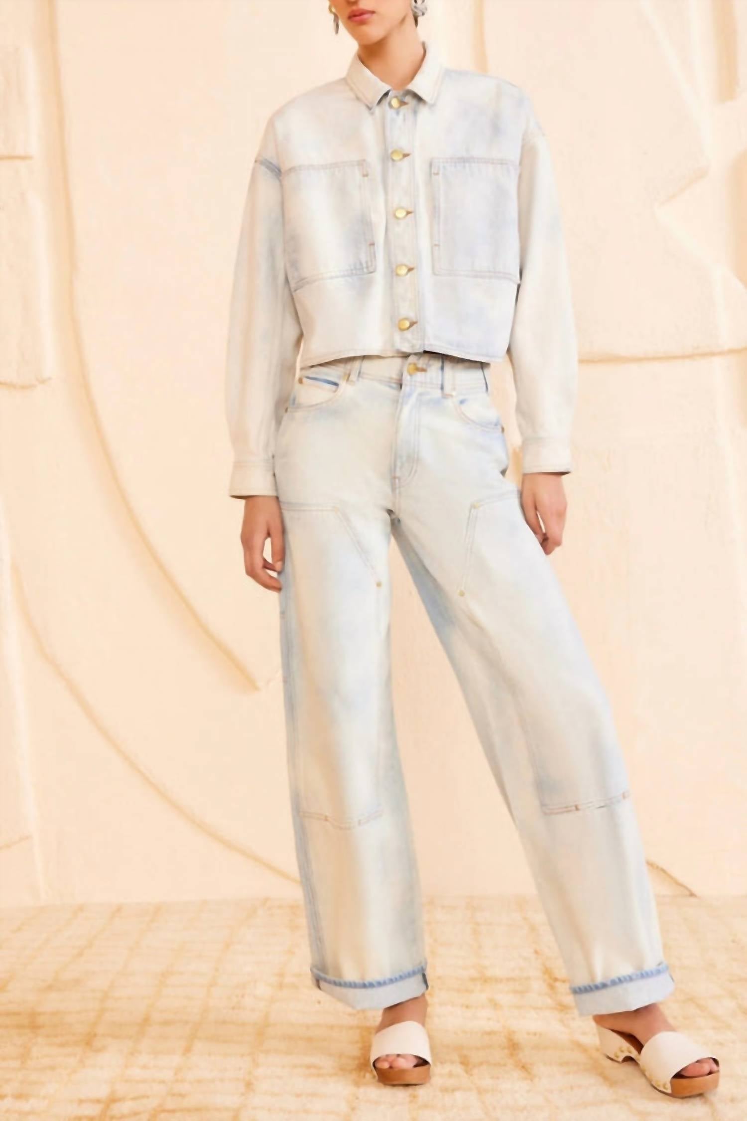 Just as cute as they are comfortable. Introducing the Olympia Carpenter-style Jean by Ulla Johnson, a standout piece in a captivating light blue, known as Cielo. This relaxed fit jean features a mid-rise waist and wide leg style, showcasing Ulla Johnson’s dedication to craftsmanship with its solid pattern and hand-hammered brass belt loop. Expertly cut from 100% cotton non-stretch denim, it promises durability and comfort, complete with practical pockets and a button closure. The jeans boast a special hand-rubbed marble dye technique for a unique look, and should be machine washed cold to maintain their rich, light wash hue. Perfect for adding a touch of streetwear chic to your travel wardrobe this fall.