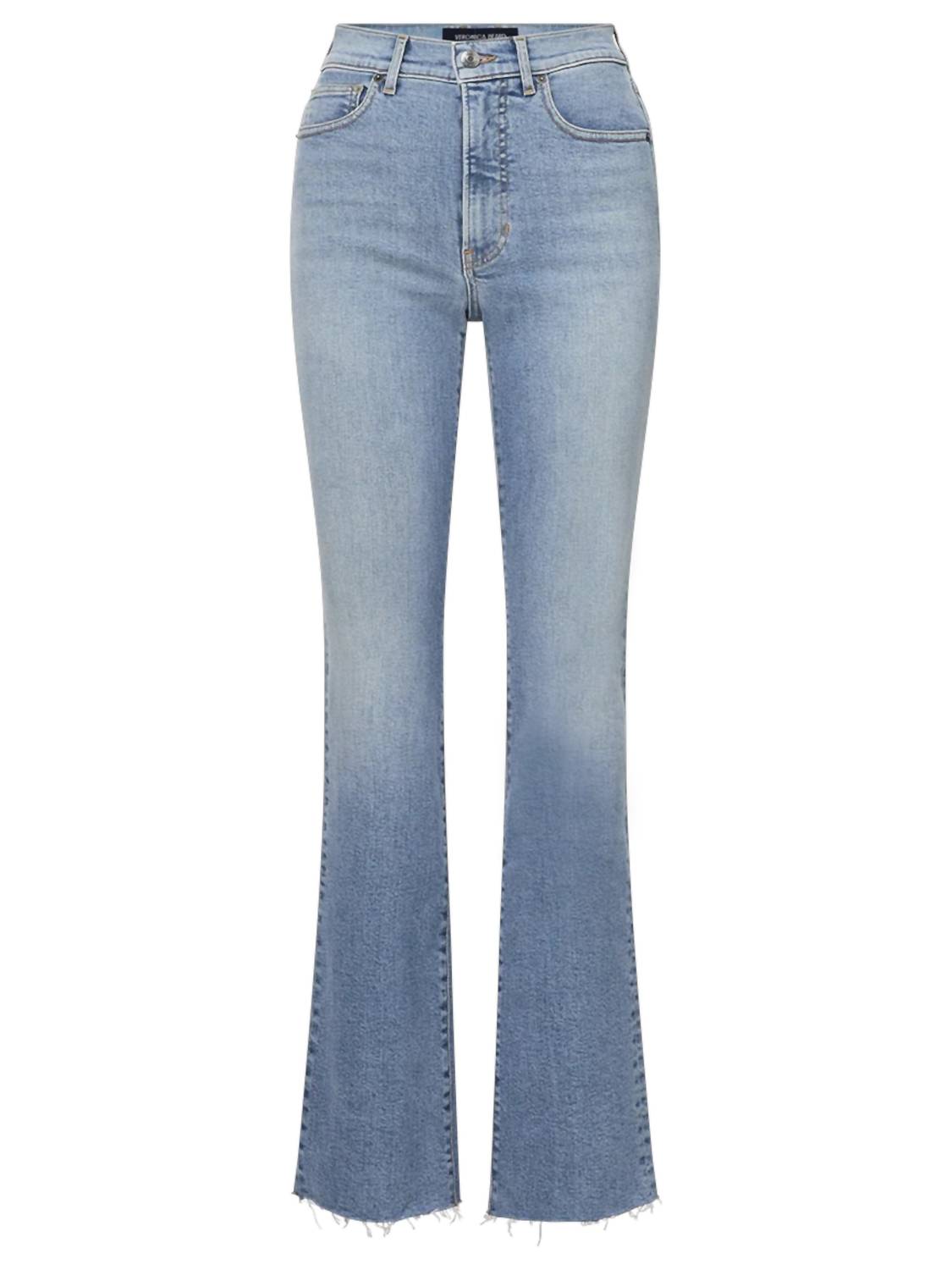 Discover the Cameron Raw Hem Bootcut Jean by Veronica Beard, crafted in Los Angeles from premium Italian denim for a chic and timeless look. These jeans feature a mid-rise waist, classic bootcut leg with a 32-inch inseam, and a 10.5-inch rise, making them perfect for everyday wear or travel. They comprise 97% cotton and 3% elastane for just the right amount of stretch and are finished with a button closure and raw hem for a modern touch. In Riviera Breeze, this textured cotton blend is easy to care for with machine wash instructions, ensuring effortless maintenance and enduring style.