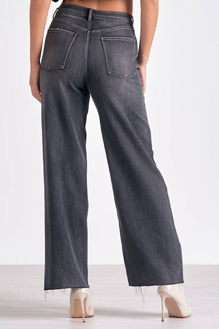 Elan - Cuffed Bottom Denim Wash Wide Leg Jeans
