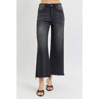 Risen - Women's High Rise Frayed Ankle Wide Jeans