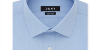 DKNY Men's Slim Fit Stretch Mini Check Dress Shirt Blue Size 16X34-35