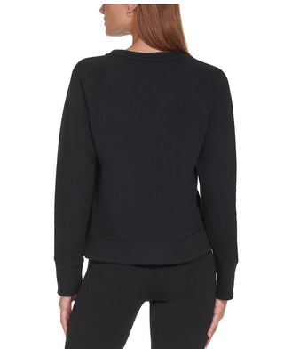 DKNY Women's Rhinestone Logo Print Crewneck Sweatshirt Black Size Medium