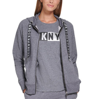 DKNY Women's Metallic Two Tone Logo Hoodie Gray Size X-Large