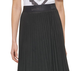 DKNY Women's Faux Suede Pleated Skirt Black Size Large