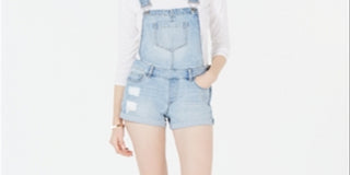 Dollhouse Juniors' Cuffed Denim Shortalls Suede Blue Size 3