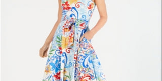 Donna Ricco Women's Printed A Line Dress Blue Size 16
