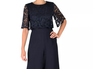 Donna Ricco Women's Lace Overlay Wide Leg Jumpsuit Navy Size 16 Plus