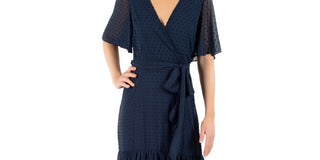 Donna Ricco Women's Tie Belted Chiffon High-Low Maxi Dress Navy Size 14