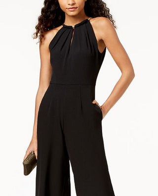 Donna Ricco Women's Halter Chain Neck Keyhole Front Sleeveless Zipper Back Pockets Solid Crepe Jumpsuit Red Size 4