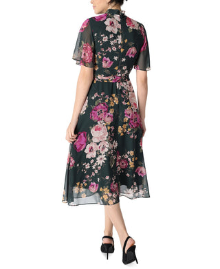 Donna Ricco Women's Floral Flutter Sleeve Chiffon Midi Dress Blue Size 6