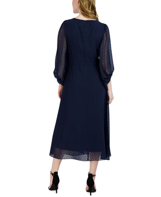 Donna Ricco Women's Clip Dot Midi Dress Blue Size 16