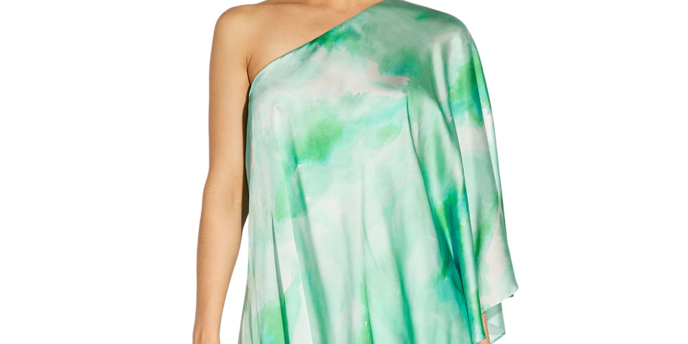 Aidan By Aidan Mattox Women's Printed One Shoulder Dress Green Size 14