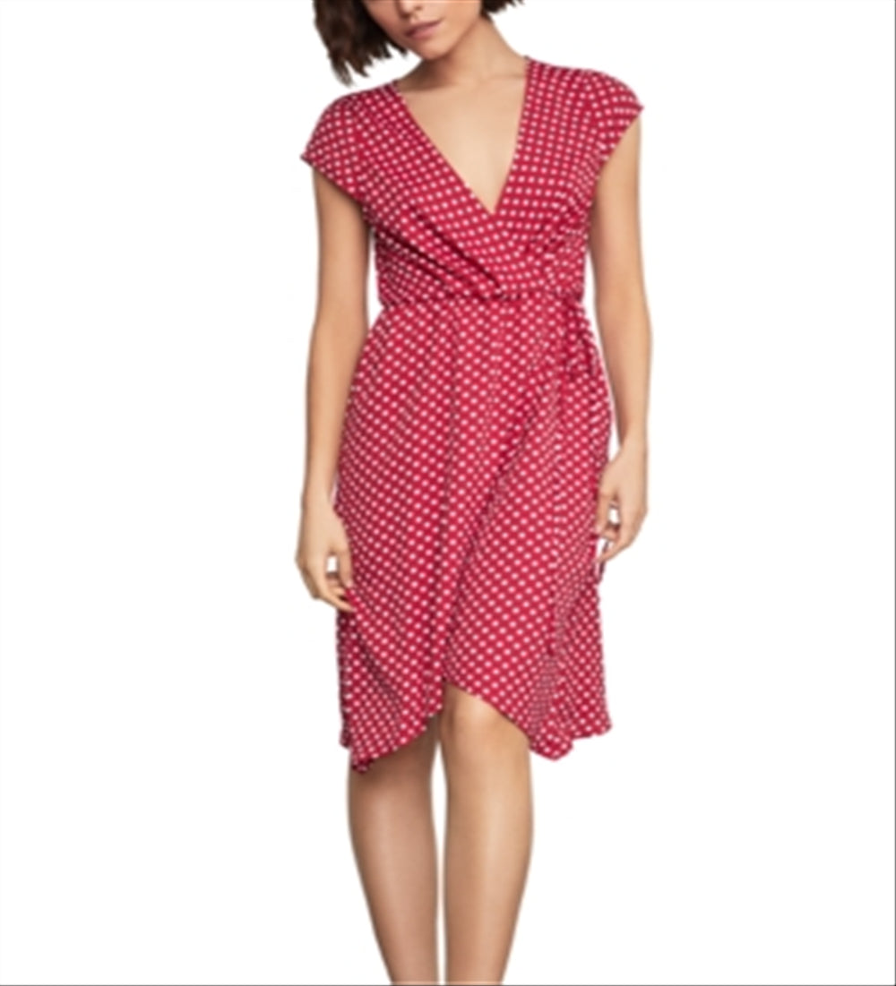 BCBGMAXAZRIA's easy lightweight dress features a faux-wrap surplice bodice with a V-neckline| cap sleeves| an elasticized waist and a handkerchief skirt that falls just above the knee.| V-neck| Pullover styling| Cap sleeves