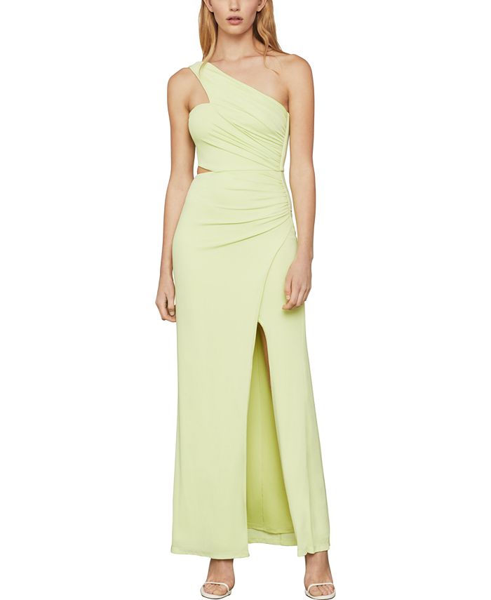 Bold and bright micro satin is draped and gathered in all the right places with this BCBGMAXAZRIA dress. With a touch of stretch for a close fit that won't ever restrict| the asymmetric bodice is balanced with a midriff cutout. The skirt falls to a floor-skimming hem and is complete with a shirred accent at the back. | Imported| Hidden zipper with hook-and-eye at center back| Style #FSD6267234| Asymmetrical bodice; midriff cutout; shirred accent at back| Asymmetrical neckline