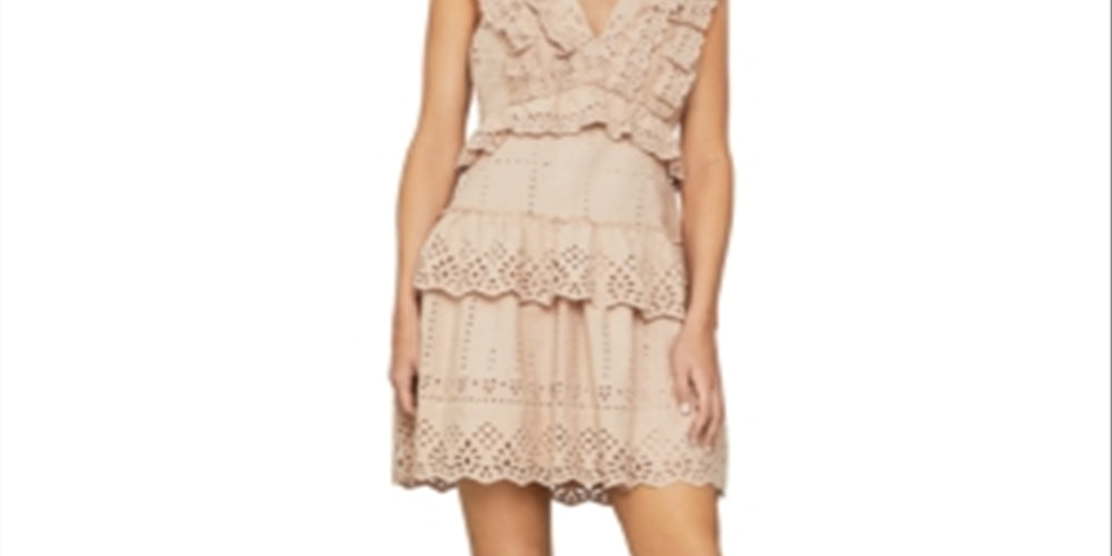 Vintage-inspired cotton eyelet showcases tiers of ruffles at the shoulders and bodice of this BCBGMAXAZRIA dress. A defined waistline lets out into a short| lined| eyelet skirt layered with scalloped edges.| Imported| Style #FSW6270852| Allover eyelet detail; layered scalloped edges; tiered ruffles at shoulders and bodice| V-neck