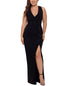 Dial-up the drama on your evening look with this sleek gown from Betsy & Adam| a V-neck style with a daring leg slit. | Floor-length formal dress| Leg slit| Back zipper closure| Made in USA of imported materials| V-neck; Gown silhouette