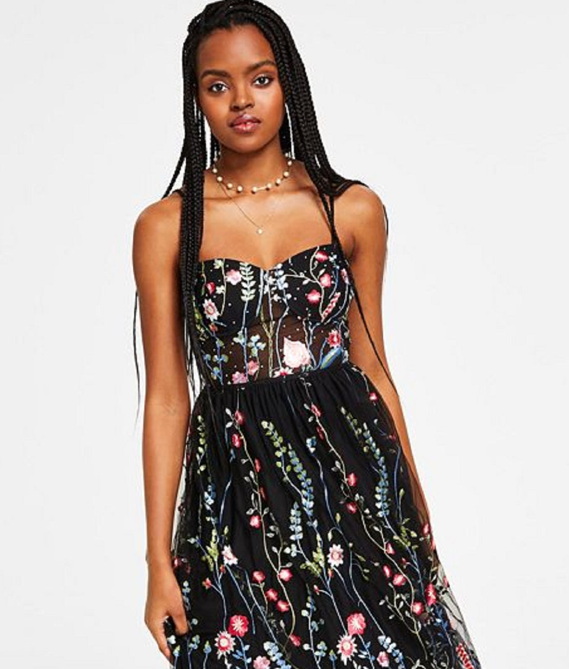 Mesh illusion inset at waist and back; embroidered design|Adjustable straps|Back zipper closure|Sweetheart neckline; Ball Gown silhouette|Lined|Imported