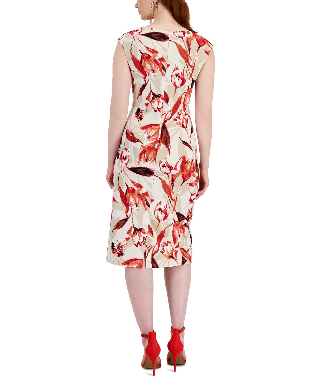 Artistic florals and a curve-hugging silhouette mean this midi dress from Connected is sure to be your new fav. | Approx. 43 long from center back neck to hem| Runs true to size; order your normal size| Falls below the knee to lower calf | Scuba crepe; Stretchy and supportive| Split neckline; midi silhouette| Zipper closure at back