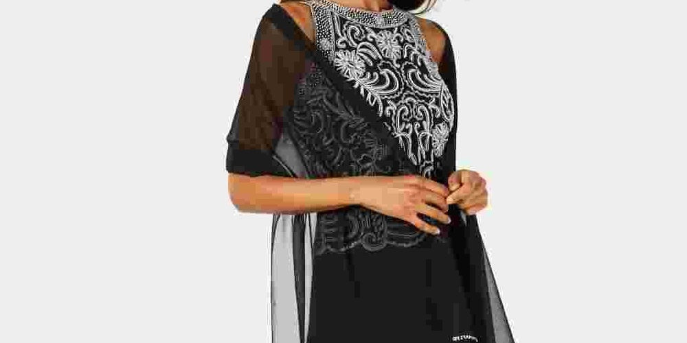 J Kara Women's Beaded Gown & Chiffon Scarf Black Size 12