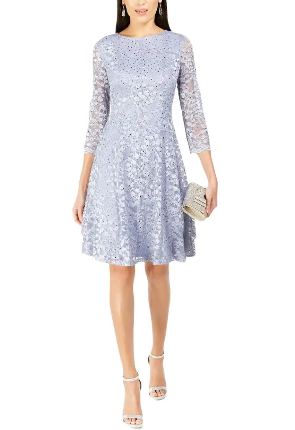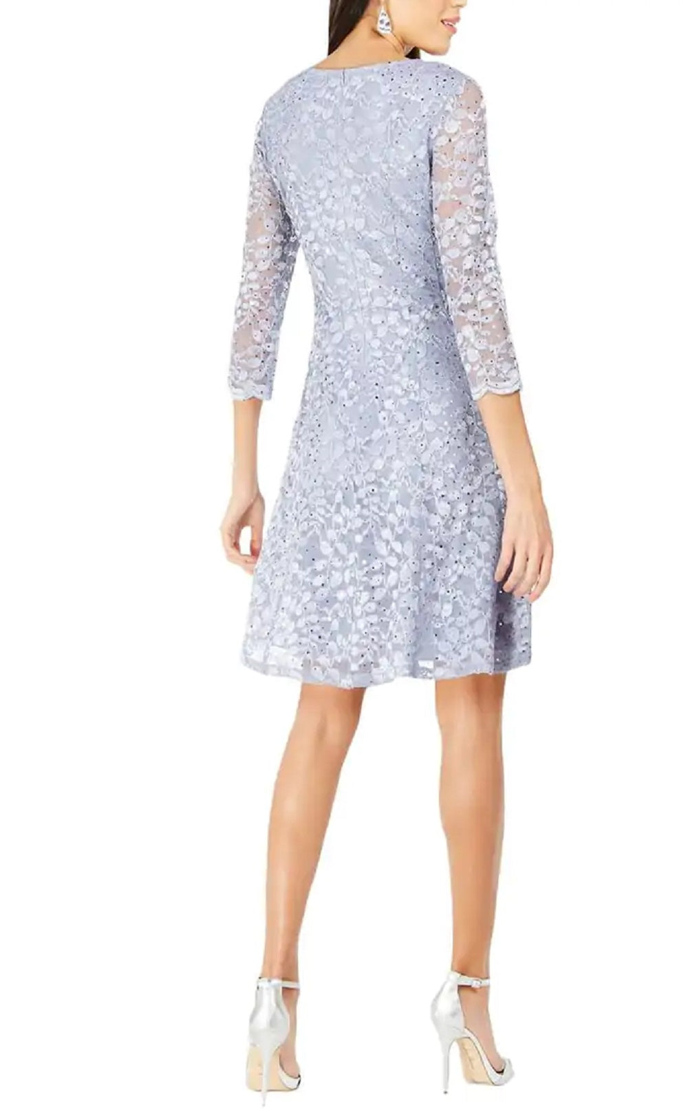 Jessica Howard Women's Sequined Lace A Line Dress Blue Size 12 Petite
