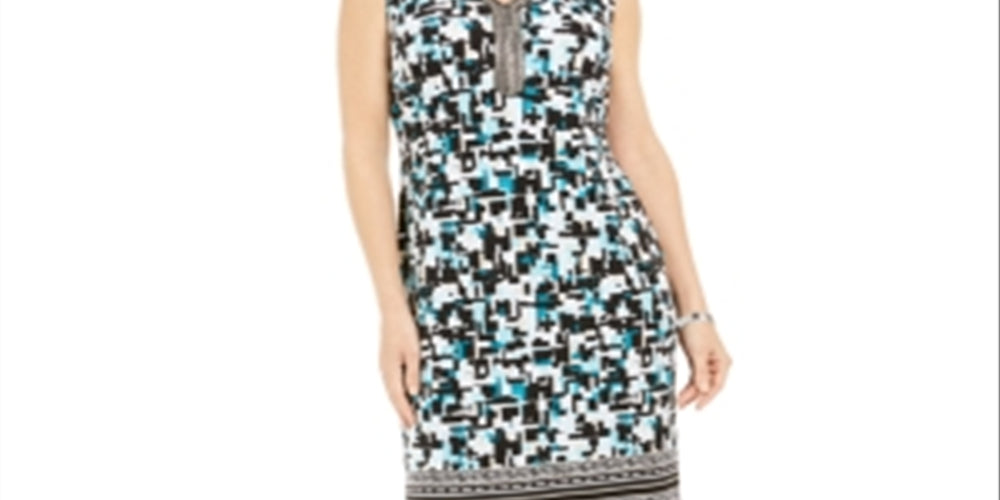 JM Collection Women's Printed Beaded Sleeveless Dress Black Size -S