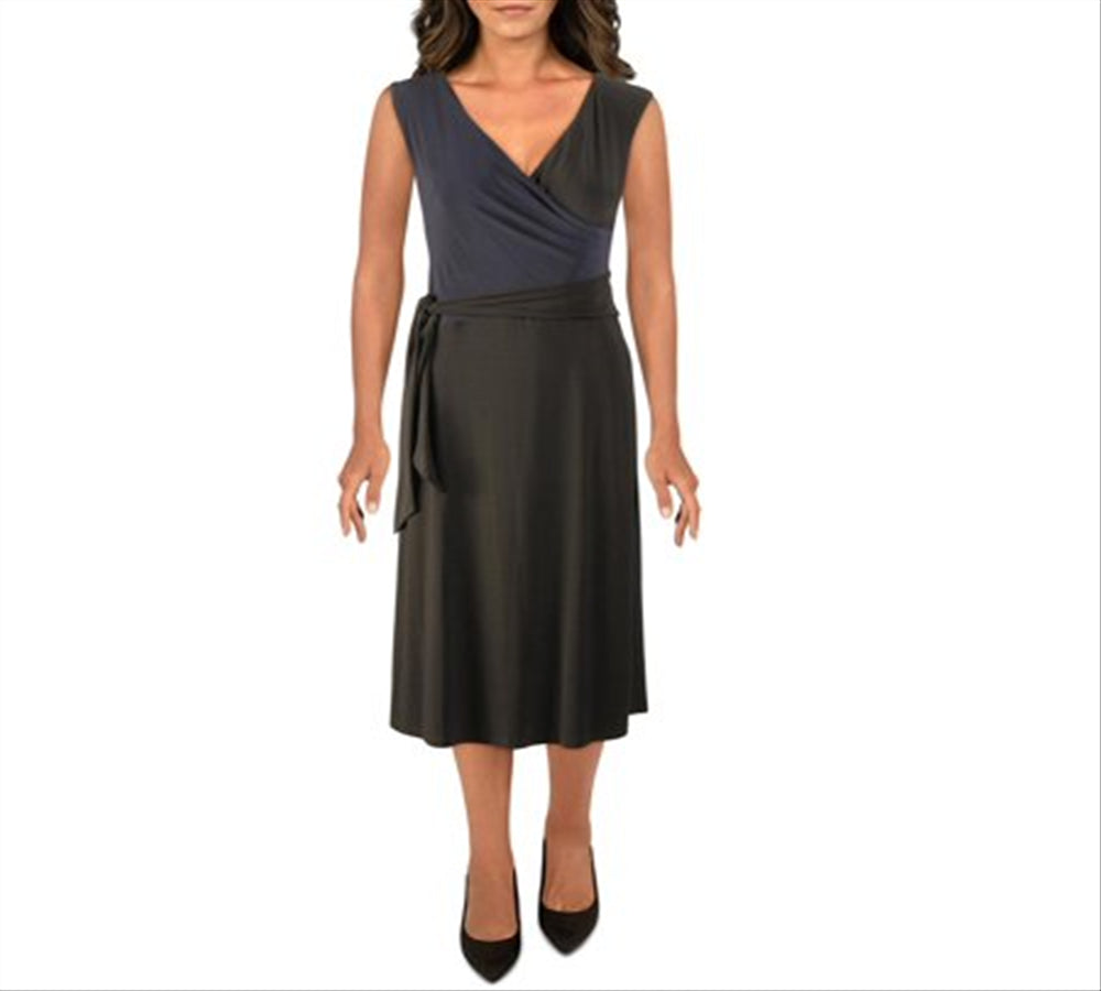 Lauren Ralph Lauren Womens Dorena Midi Faux Wrap Wear to Work Dress Black Size 14