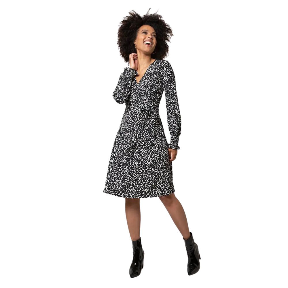 Leota Women's Perfect Wrap MIDI Dress Black Size Large