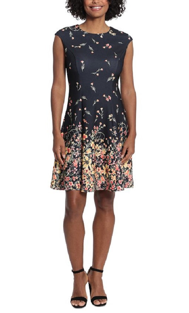 London Times Women's Printed Fit & Flare Dress Black Size 12Petite
