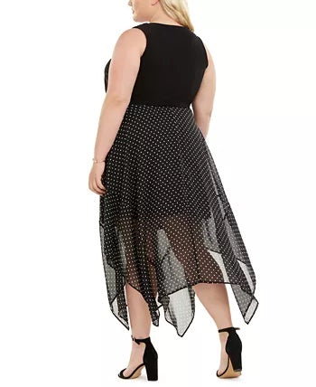 Love Squared Women's Plus Size Polka-Dot Handkerchief-Hem Dress Black/White Size 2X