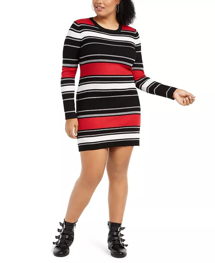 Planet Gold Women's Derek Heart Trendy Plus Size Striped Bodycon Dress Black Size 3X