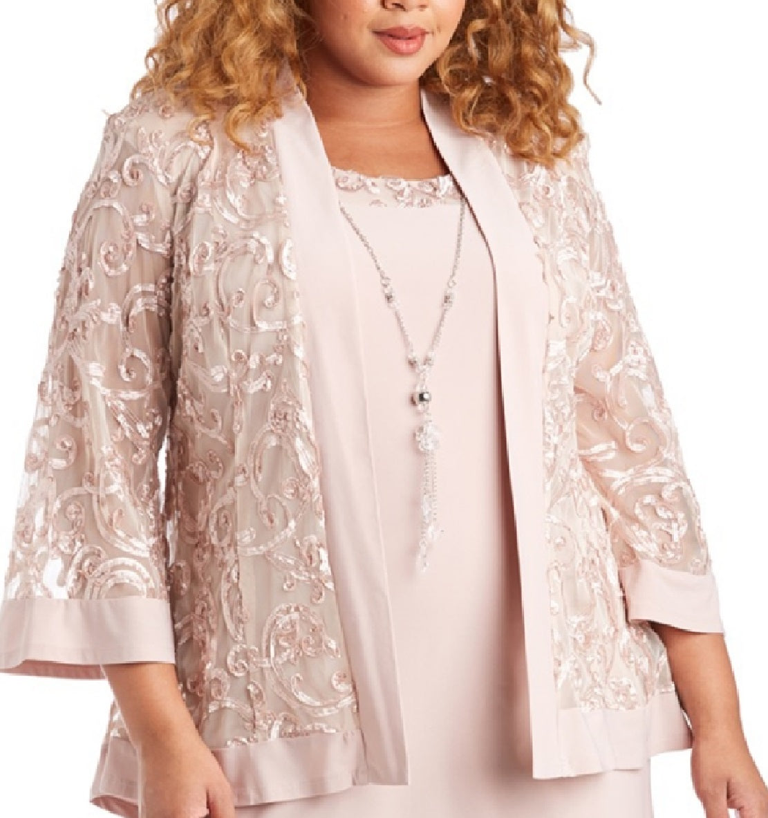 R & M Richards Women's Dress & Soutache Jacket Pink Size 14W