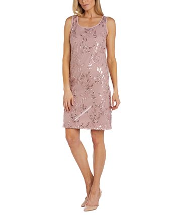 R & M Richards Women's Sequined Scoop Neck Dress & Jacket Brown Size 14