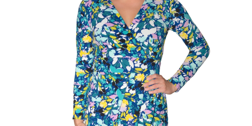 Rachel Roy Women's Cia Floral Print Faux Wrap Dress Blue Size Small