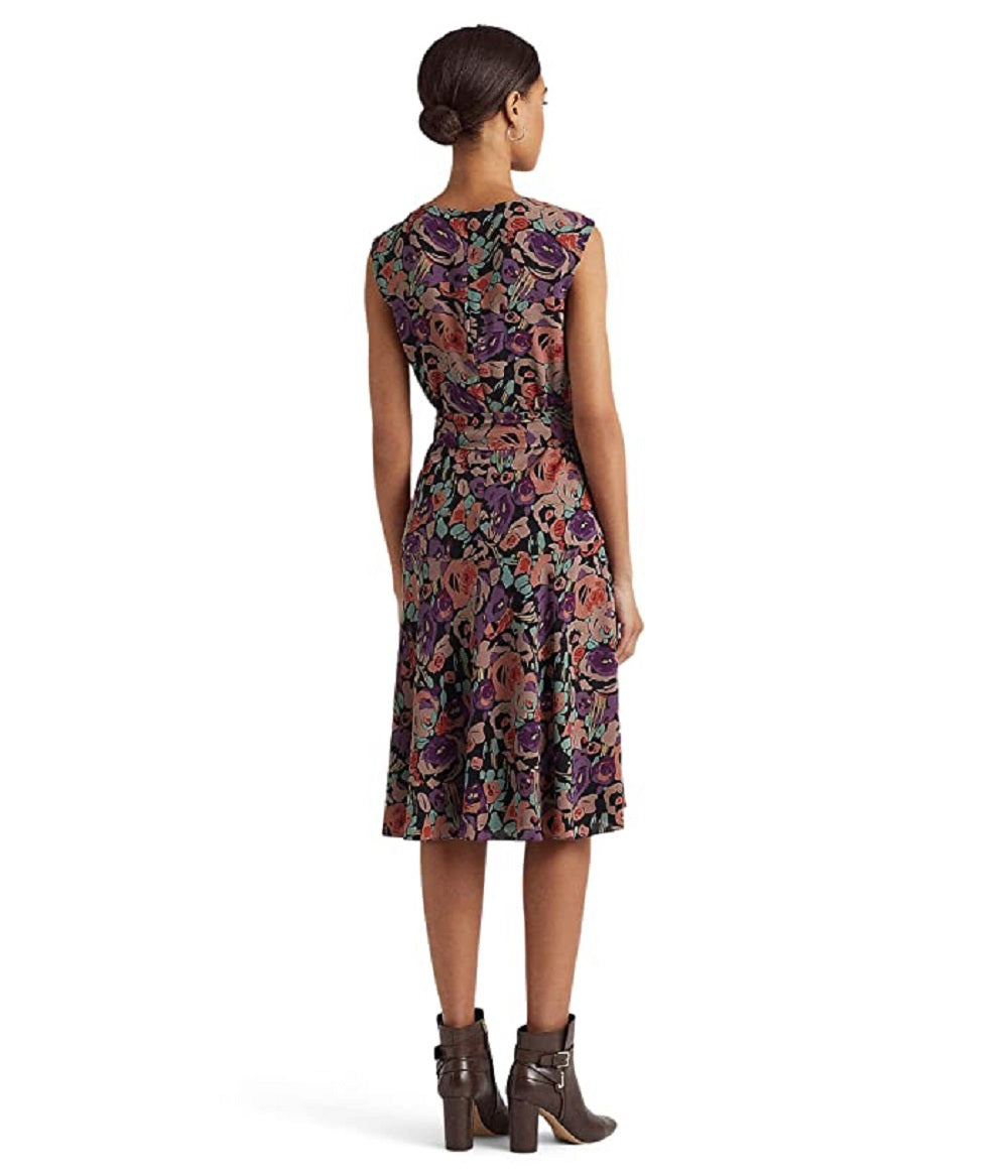Defined by its timeless empire silhouette| a self-belt| and the season's vibrant floral motif| this knee-grazing Ralph Lauren Floral Belted Crepe Dress is artfully crafted from airy crepe for a fluid drape and graceful movement| Keyhole neckline with a button-and-loop closure| Concealed center back zipper with a hook-and-eye closure| Cap sleeves